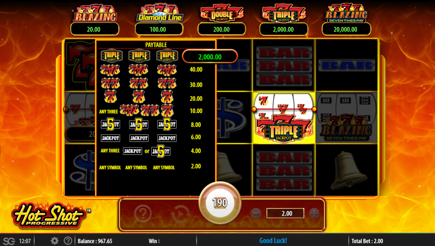 Hot Shot Progressive es una tragamonedas de Bally. Según el número de jugadores que han buscado información sobre Hot Shot Progressive, no se trata de una tragamonedas muy popular. Sin embargo, ello no significa que sea mala. Te animamos a que la pruebes o consulta nuestra lista de juegos de casino populares.